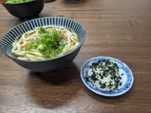 「肉うどん」&「わかめおにぎり」と「えび天うどん」の登場です♪