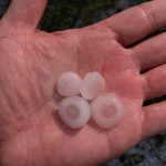 朝の天気予報で「今日の天気は雨」と聞き、雨に濡れる覚悟を決め出勤をしました。山間部に向けて車を走らせていると、午前中のうちに雨が降り出し、天気予報の正確さに関心をしている時でした。ドガドガドガッ!と、今まで聞いたことがないような音が、車の天井から聞こえてきました。雨にしては、明らかに音が大きい・・・。フロントガラスにぶつかり始めた白い物を見てビックリ!。その正体は「雹」でした。それも特大サイズの雹です。これまでの人生で、こんなに大きい雹を見たことがありませんでした。納品中も降っていたのですが、痛いのなんの・・。上を見ようものなら怪我をしそうな勢いです。