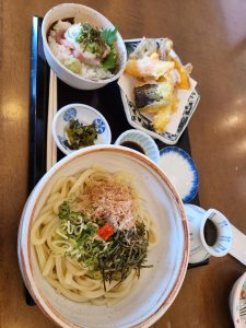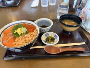 道の駅のレストランでは3人とも海鮮物の食べ物を食べました。