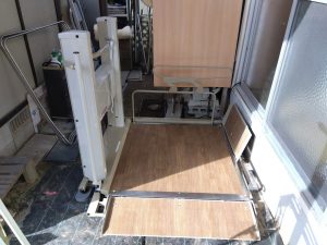 新商品の昇降リフトを使って、車いすでもガンガン外出できるようになりました。