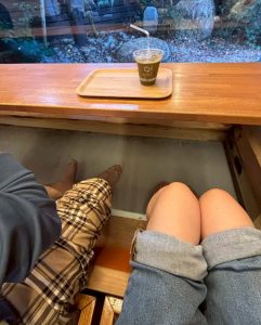 さすがに外は寒かったので足湯カフェを利用しました。足を浸けてしばらくすると本当に全身がポカポカになりました!!