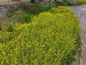 私の近所の島田川沿いは3/28の時点では2分咲ですが、菜の花がとてもきれいです!!