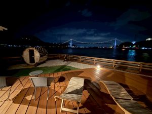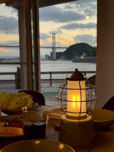 外のデッキからは、ライトアップされた関門橋が一望できて雰囲気抜群🌟